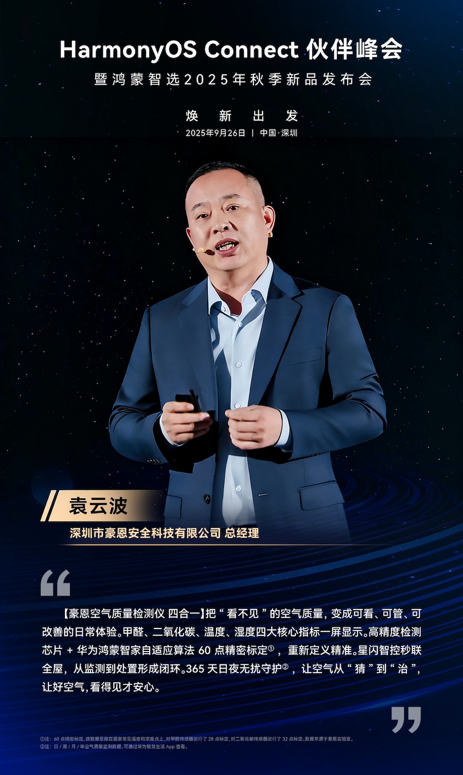On September 26, 2025, the HarmonyOS Connect Partner Summit and HarmonyOS Smart Selection 2025 Autumn New Product Launch Conference were successfully held in Shenzhen. At the meeting, the latest progress in the ecological construction of HarmonyOS Smart Connect was introduced, and a batch of HarmonyOS Smart Selection autumn new products were officially released.