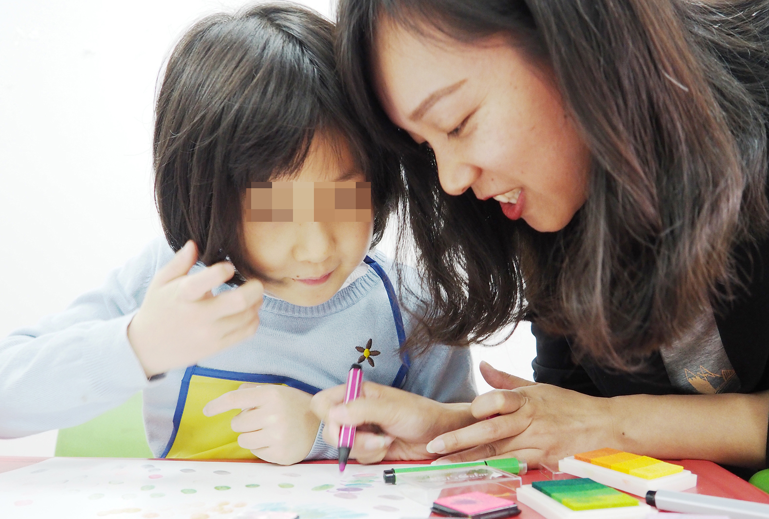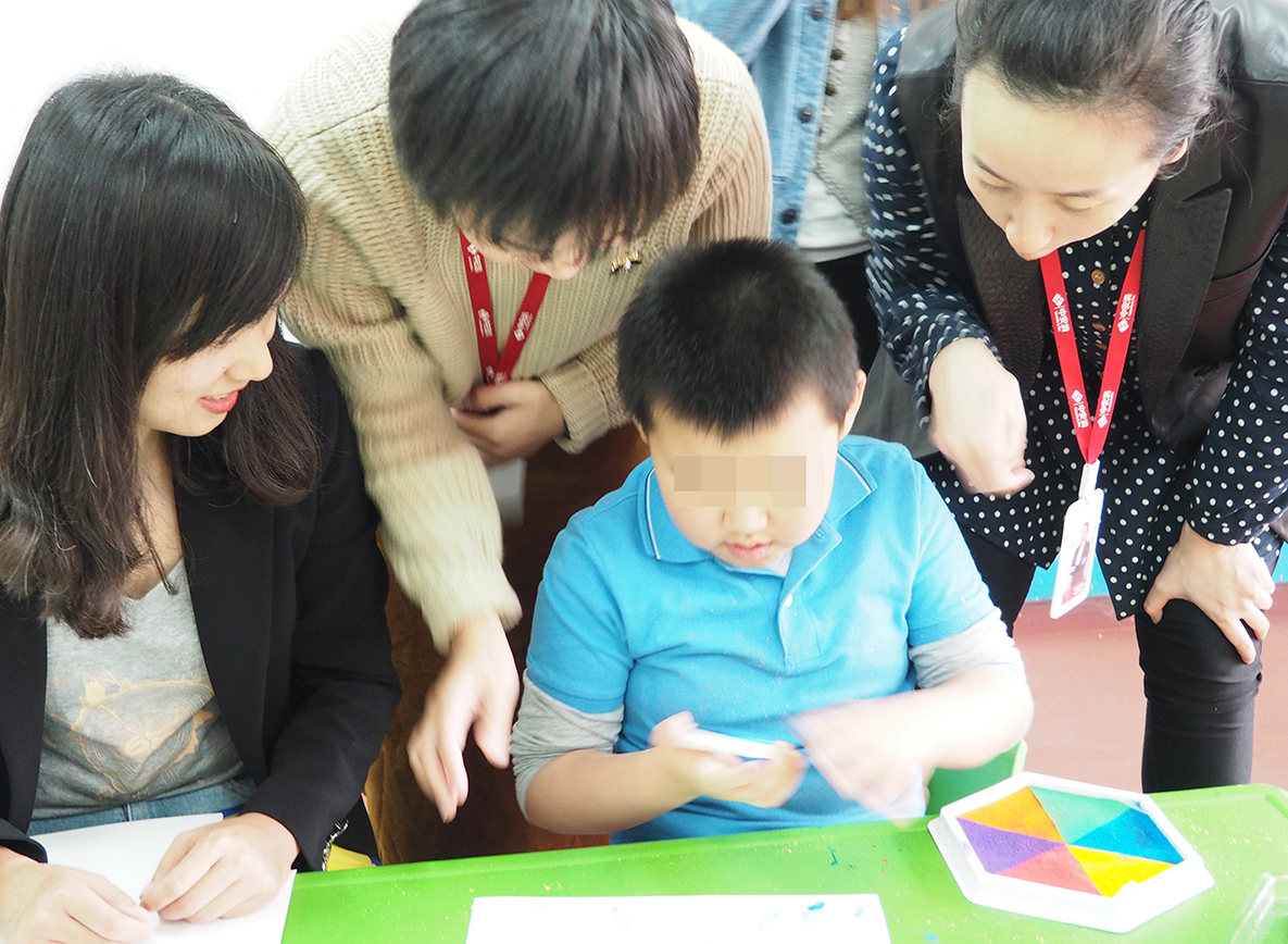The volunteers found these children to be very cute, and after one-on-one communication and interaction, they also learned quite a bit about these children’s unique traits. The children appeared to be distracted and couldn’t follow the painting techniques that the volunteers were teaching them. They were unable to paint on the specified spot and the volunteers discovered that these children were far behind in linguistic competence, compared to other children of the same age. Some of these children were not able to even pronounce words. Another aspect that surprised the volunteers was that even though they were all from the same Care Center, they didn’t interact or play with each other, like in other kindergartens.