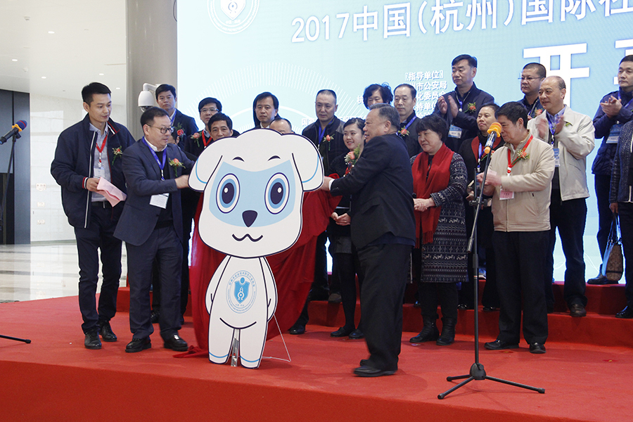 CSPIA chairman Wang Yanji unveiled the mascot LeLe for 2017 Hangzhou Security China