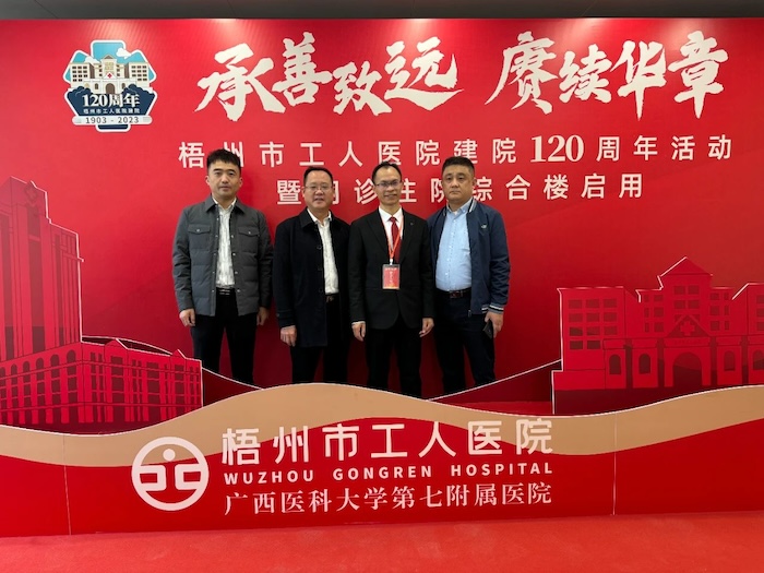 Recently, Guangxi Wuzhou Workers' Hospital, which was contracted by Shenzhen Weida Medical System Engineering Co., Ltd., celebrated the 120th anniversary of the establishment. On the same day, the outpatient and inpatient complex building of the hospital was officially put into operation. Li Jihai, Ding Zuopeng, project manager Wei Yu and other leaders were invited to attend the opening ceremony.