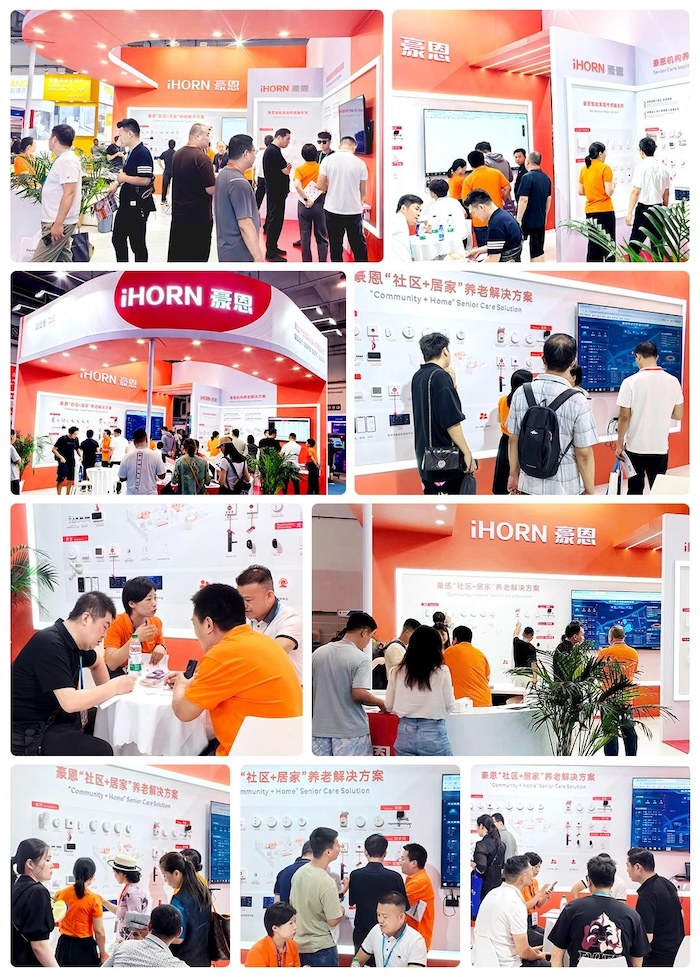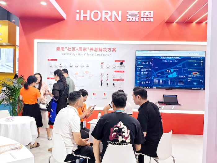 展會現場,豪恩全方位展示了居家安全防護系列、呼叫告警系列、定位穿戴系列、健康監護系列在“社區+居家養老”、“機構養老”等多領域的場景應用,吸引了眾多參展商和觀眾來展位體驗參觀。