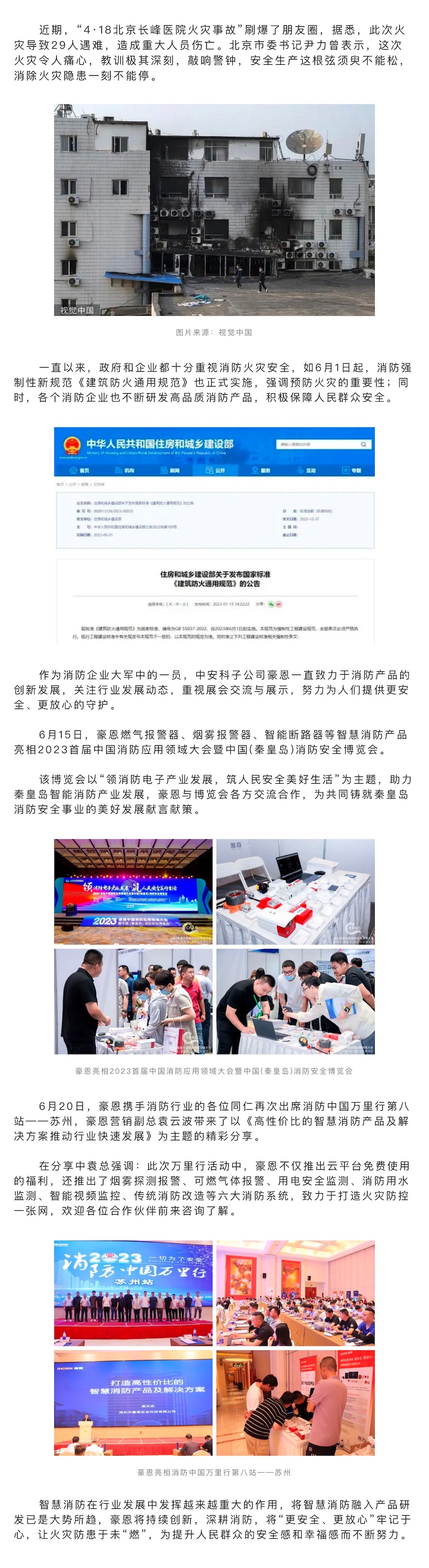 讓火災防范于未“燃”,中安科子公司豪恩“智慧消防”守護萬家安全