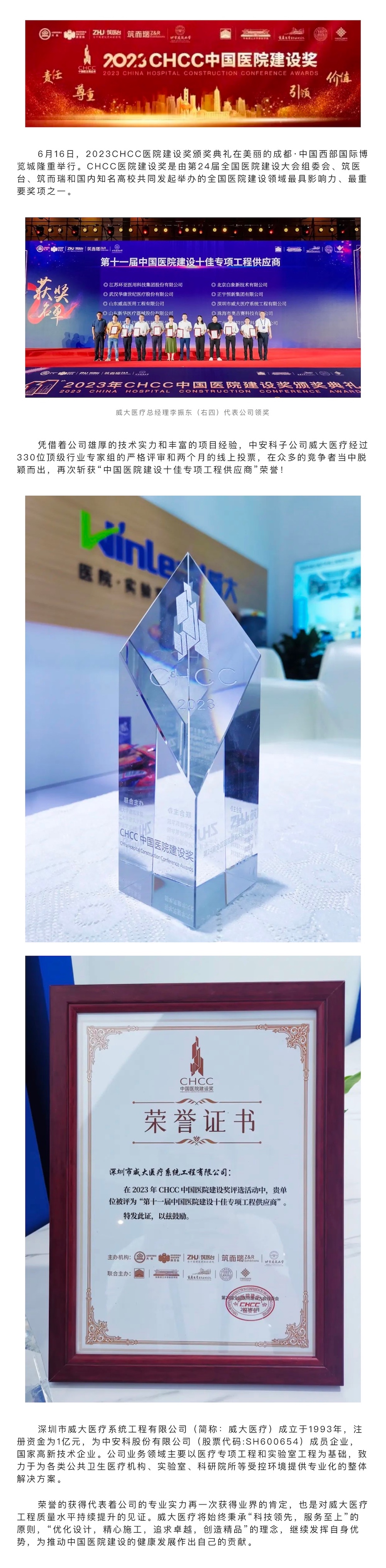 喜訊|中安科子公司威大醫療再次榮獲“中國醫院建設十佳專項工程供應商”殊榮