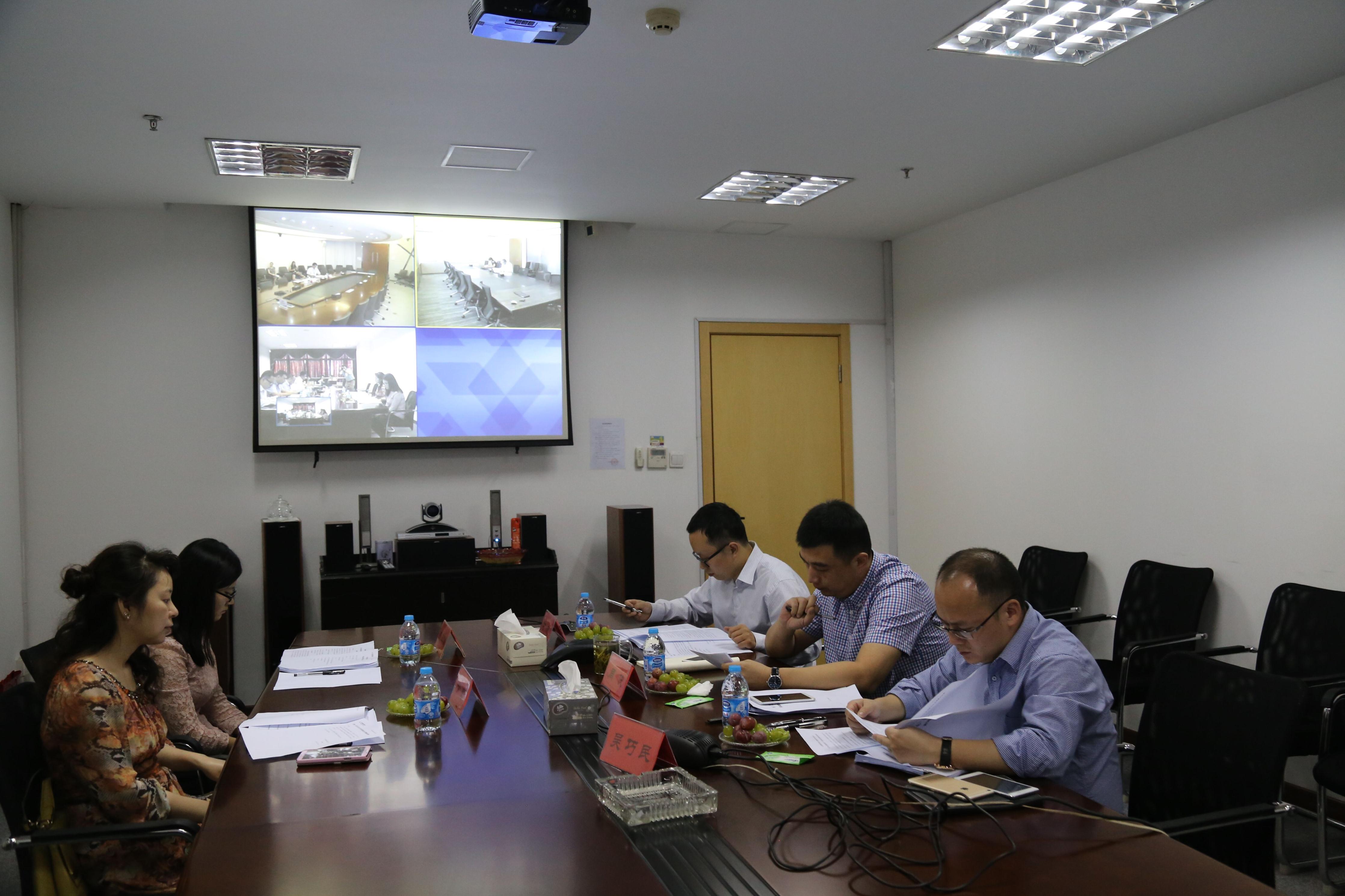 圖1,上海會場,董事:周俠(右中)、吳巧民(右三);監事:金蕾(左二)、陳亞南(左一);董事會秘書:付欣(右一)。