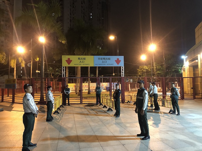 中安科子公司Guardforce澳門衛安保安人員秉承著以客為先的安保服務精神于凌晨三點到達活動場地準時報道,展示了衛安團隊對確保活動安全與成功的堅定承諾和專業態度。