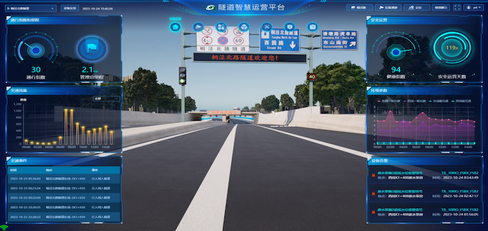 本系統采用人工智能技術,將實體隧道與虛擬模型進行映射和交互,系統通過多維智能感知技術,利用各類傳感器和監測設備,對隧道內外的多維信息進行感知和采集,以實現對隧道環境、交通流量、安全狀況、結構監測等多個方面的全面感知;系統采用數字孿生技術,對隧道進行數字化建模,以更加真實、直觀的方式呈現形狀和結構,以及隧道的狀態和運行情況。依托大數據分析技術,系統以任務管理為導向,貫穿整個生命周期,對設備、信息、人員、工單等進行跟蹤管理,有效提升管養效率;通過人工智能數據驅動模型,將隧道運行狀態的數據和模型結合起來,提供隧道管理和運營決策支持,為隧道運營管理的智能化、精細化、可視化及全生命周期管理提供了解決方案,極大地提升了隧道綜合管理效率和應急事件處置能力。