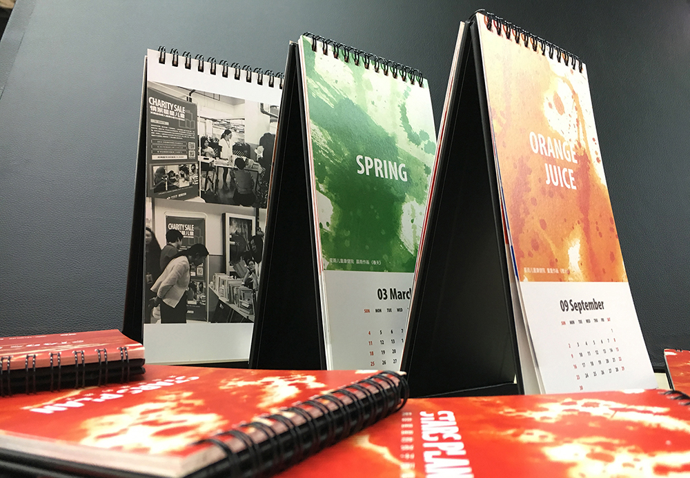 (圖1:選用孩子繪畫作品制成的臺歷)