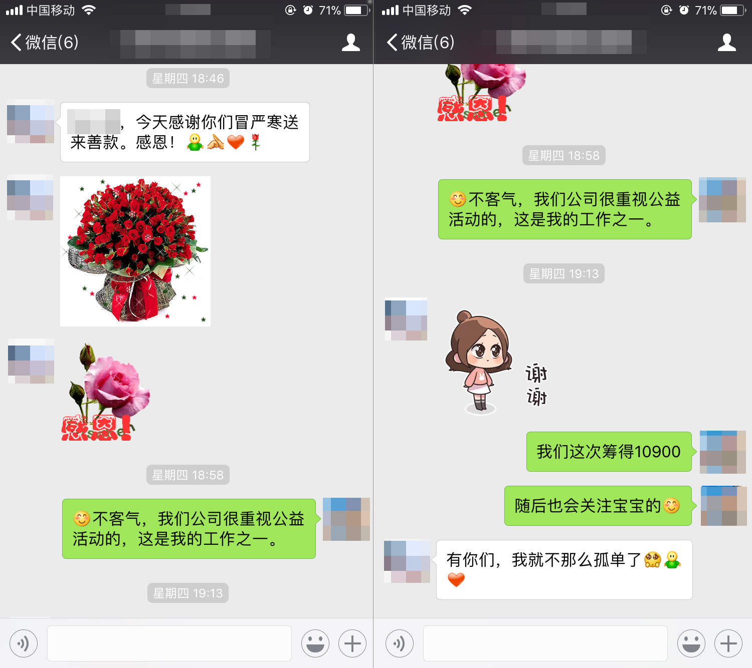 1月中旬,在活動接近尾聲之際,中安科股份派遣代表前往雙胞胎母親丁女士工作地點,將所有善款10900元親自交予她本人手中。丁女士接到善款之后非常感動,在志愿者走后再次發微信表示感激之情,“謝謝你們冒嚴寒送來善款,有了你們,我就不那么孤單了”。