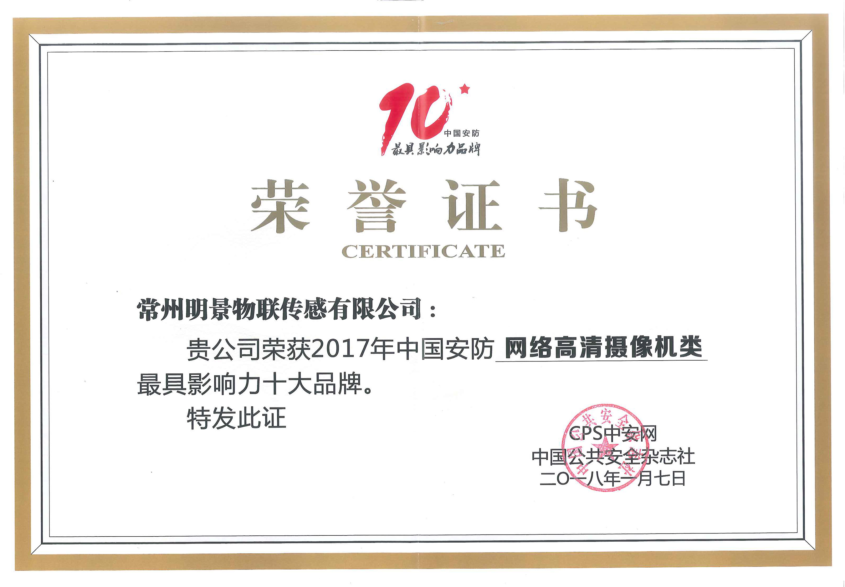近日,以“數(shù)字安防、智能交通、智慧城市”為主題,由深圳市安全防范行業(yè)協(xié)會(huì)、深圳市智能交通行業(yè)協(xié)會(huì)、深圳市智慧城市產(chǎn)業(yè)協(xié)會(huì)、全國(guó)城市安防協(xié)會(huì)合作互助聯(lián)盟、中國(guó)公共安全雜志社等主辦的“2018全國(guó)安防界迎春團(tuán)拜會(huì)”在深圳世界之窗凱撒宮隆重舉行。中安科股份成員企業(yè)常州明景物聯(lián)傳感有限公司(以下簡(jiǎn)稱明景)憑借其產(chǎn)品研發(fā)實(shí)力脫穎而出,榮獲2017年中國(guó)安防“網(wǎng)絡(luò)高清攝像機(jī)類”最具影響力十大品牌。