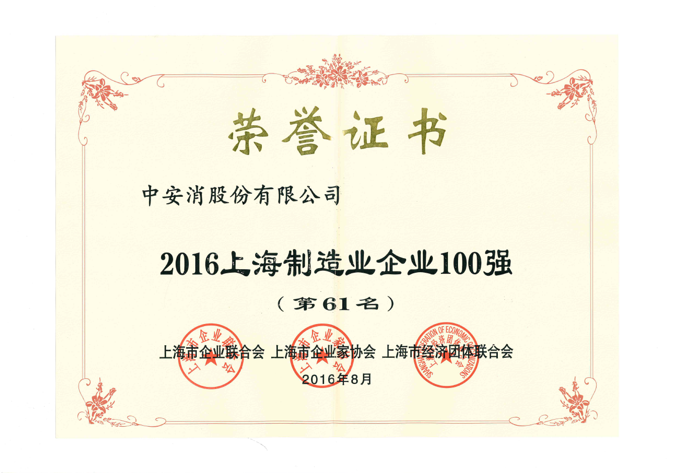 中安科股份榮登2016上海民營企業(yè)百強(qiáng)榜、上海制造業(yè)企業(yè)百強(qiáng)榜