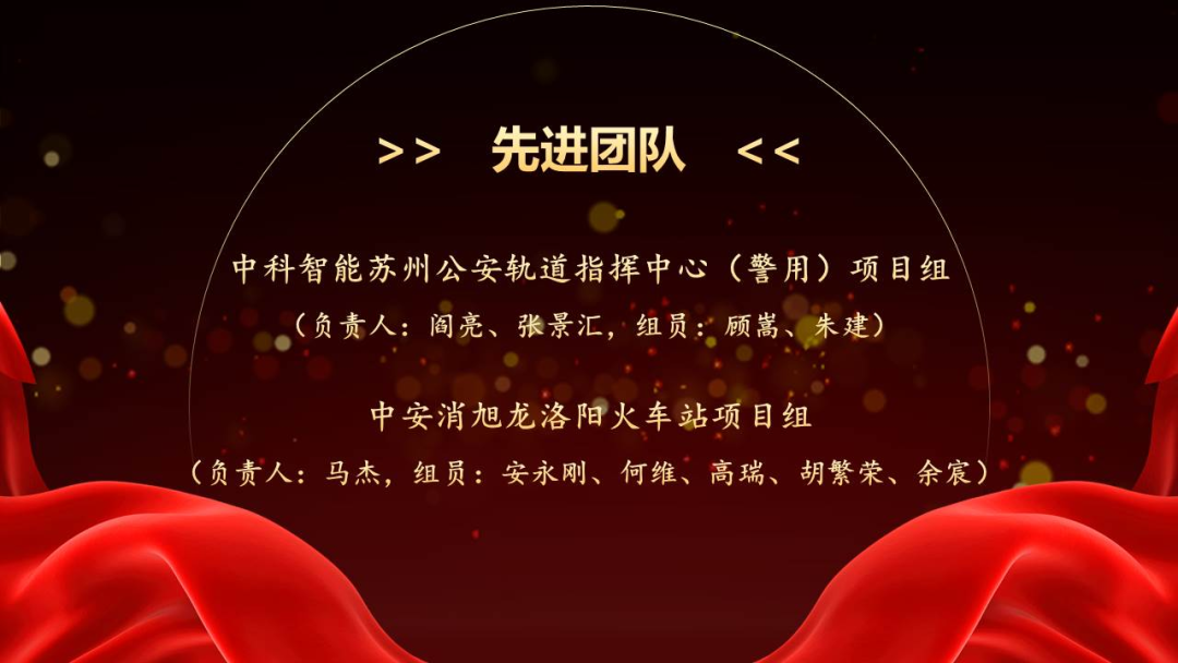 “先進團隊”——中科智能蘇州公安軌道指揮中心(警用)項目組,負責人:閻亮、張景匯,組員:顧嵩、朱建承建的“蘇州市公安軌道應急指揮中心警用智能化采購與集成項目”,涉及10個公安軌道應用業務智能化系統,設備種類多、供貨期不一。為保質保量、按期完工,項目組制定了詳盡的施工進度計劃、設備材料檢驗標準等,配合協調設計、分局、線網實施單位、各系統供應商廠家等專業對接技術需求及落地,最終完美交付,得到了各方的充分肯定,目前該項目正在申報公安部科技進步二等獎。