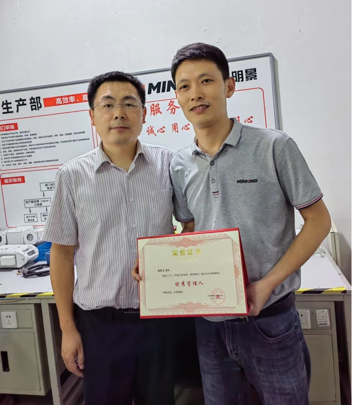 “優秀管理人”——朱傳飛,生產部經理兼售后服務經理,作為生產管理第一責任人,2021年通過帶領技術骨干調整工序、優化工藝流程(攻關改進92項)等,極大的提高了產能,與上一年相比,入庫產量提升18.7%、入庫產值提升36%;帶領團隊的售后團隊年度維修及時率96%、維修總量2113件、維修質量100%、零投訴、售后服務滿意度100%,并創造了二次銷售與盈利;作為生產安全第一責任人,定期組織宣導安全教育,做到全年生產財產、人身安全零事故。