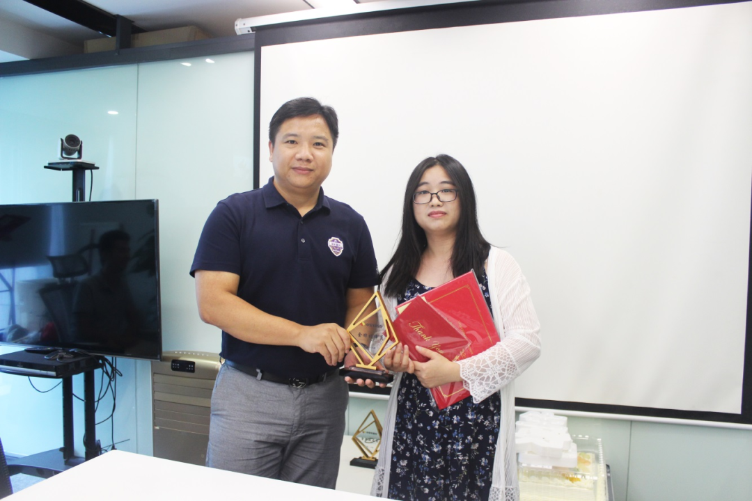 表彰大會上,由公司常務副總經理趙倩女士為劉泉香、左有為頒發了獎杯、榮譽證書及感謝信。